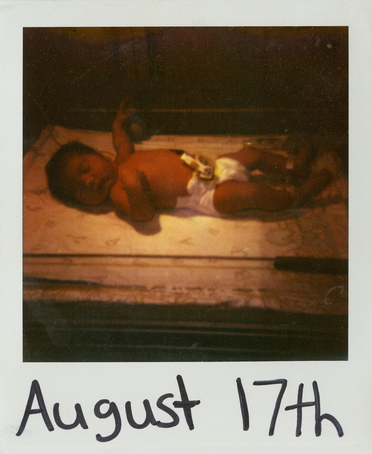Fotografiile sunt expuse de-a lungul a trei pereți ai camerei, în trei rânduri. Sunt datate cu un format simplu: luna și data sunt scrise cu un marker negru, cu un scris de mână neglijent. Dimensiunile mari ale proiectului și întinderea lui în sală îl fac dificil de cuprins în întregime. Pentru observarea detaliilor, privitorul este nevoit să se apropie. Odată ce începe să distingă conținutul fotografiilor, sentimentele de nostalgie și bucurie apar: protagoniștii zâmbesc, mulți dintre aceștia sunt studenți și sunt încadrați de decorațiuni tipice petrecerilor. Câteva dintre acestea sunt neobișnuite, precum una cu un nou-născut, un mormânt sau un cuplu surprins în timpul unui act sexual. Efectul tipic fotografiilor Polaroid creează unitate vizuală între acestea: un ton mov, cald acoperă toate pozele, tonurile închise sunt mai degrabă verzi sau albastre decât negre, nu există contraste puternice iar scurgerile de lumină fac de multe ori conținutul greu de descifrat.